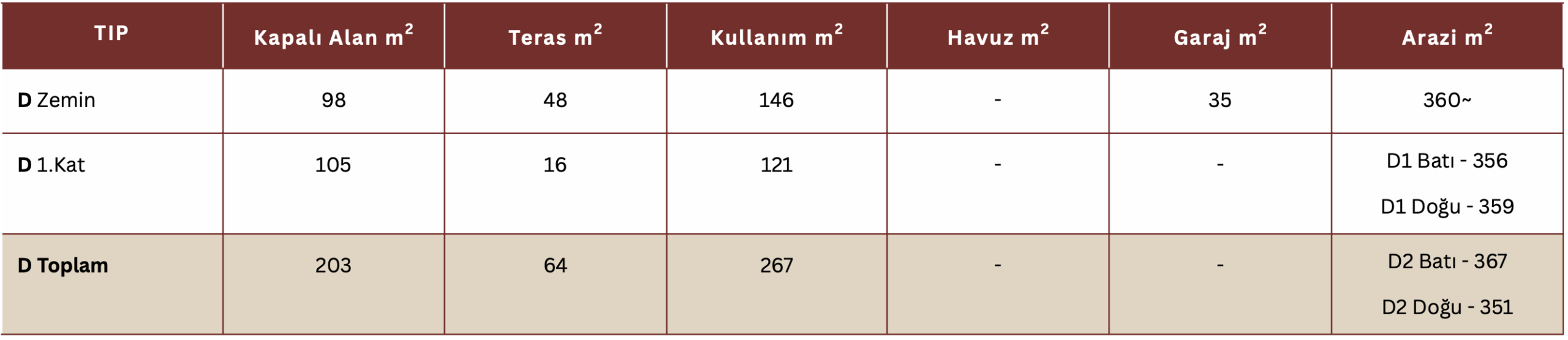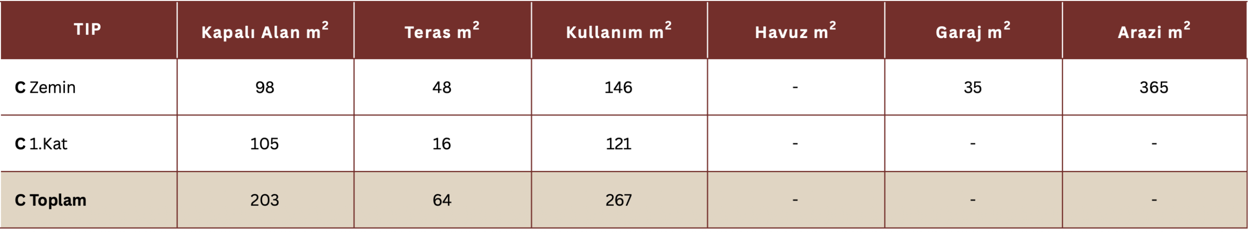 Özellikler 3+1 (Tip C-D)