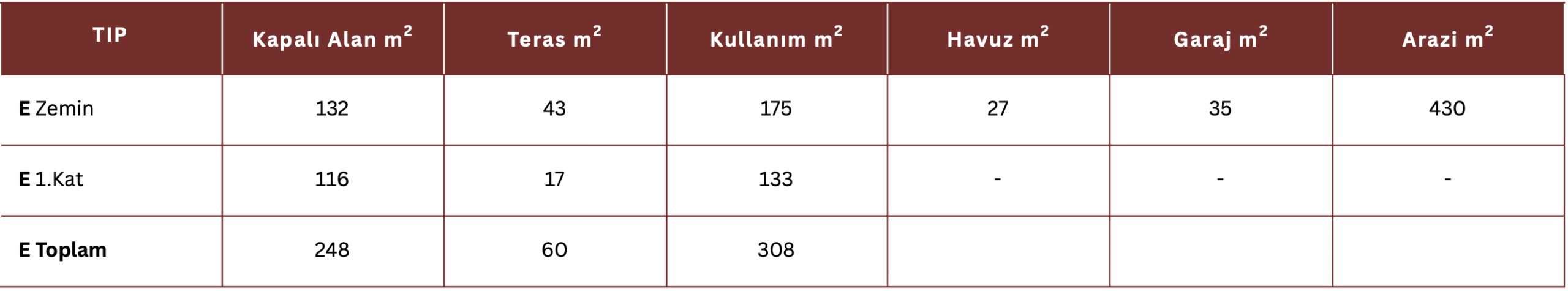 Özellikler 4+1 (Tip A-B-E)